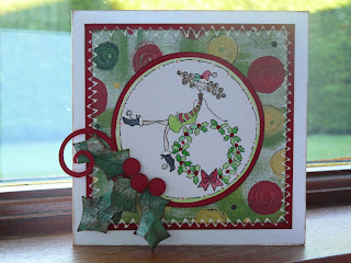 This is the card I made for the crop challenge. It is made using the Stampingbella "wreathabella" and some blonde moments paper.